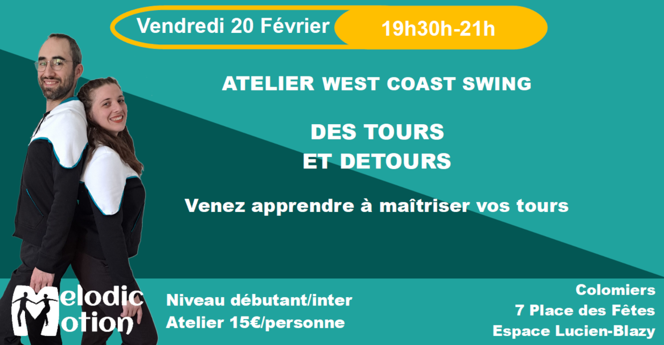 Fédération Associative Columérine 7 places des fêtes, Colomiers, France🎶 Atelier de West Coast Swing : Des tours et détours ! 💃🕺 Follower, venez apprendre les techniques pour contrôler et maîtriser vos tours ! 🙌 Leader, et si vous ajoutiez des tours à votre danse ? 👉 Quand ? Le vendredi 20 février, de 19h30 à 21h 👉 Où ? Espace Lucien-Blazy, 7 places […]